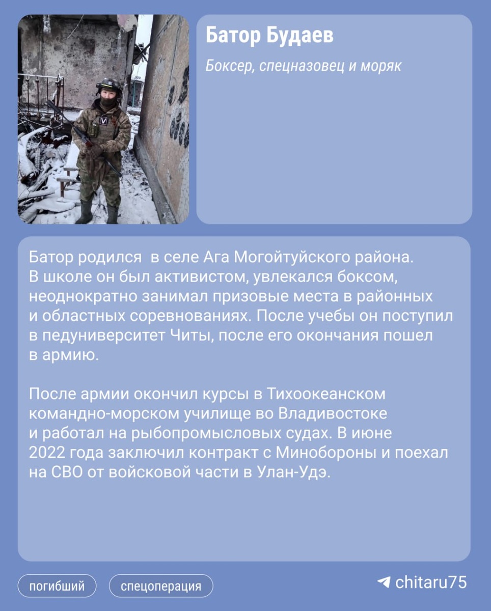 Забайкалец Батор Будаев, отец двух дочерей, умер в госпитале после ранений на СВО. В бою мужчину ранили трижды. На спецоперацию он ушел добровольцем. За время службы он получил медаль «За боевые отличия», медаль Жукова, после третьего ранения был представлен к госнаграде — медали Суворова, стал ветераном боевых действий. У Батора было много друзей — его вспоминают общительным, жизнерадостным и надежным товарищем, настоящей опорой для своей семьи. По данным администрации Могойтуйского района 🟦Подписаться