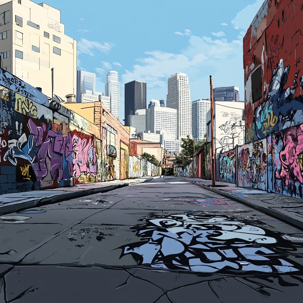 Создано на основе запроса: downtown la comic style graffti paint syle background ar Ar 2:3
