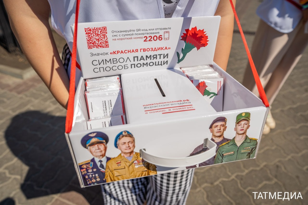 Участники городского корпуса 80-летия Победы, движения «Волонтеры Победы» и «Молоды душой» будут распространять значки в виде красной гвоздики за пожертвования (от 50 рублей) на улицах Баумана, Кремлевская и площади Свободы.
