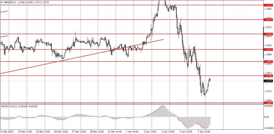 https://basechop.ru/wordpress/?p=37459 Разбор сделок понедельника: 1Н график пары GBP/USD. Пара GBP/USD в понедельник продолжала настоящий обвал. При чем крайне сложно объяснить, почему фунт, который до этого в течение долгого времени активно рос против доллара гораздо чаще, чем надо, вдруг начал валиться вниз, как камень. Никаких новостей из Великобритании макроэкономического характера не поступало. Позиция Лондона в отношении торговой войны с США достаточно мягкая. Однако логики в движениях, как мы уже говорили, сейчас немного. На рынках царит паника, и продолжаться она может еще достаточно долго. Только за вчерашний день поступило несколько сообщений о том, что Китай собирается вводить ответные тарифы, Евросоюз рассматривает возможность введения 25%-ых пошлин на весь импорт из США, Трамп собирается добить пошлинами непокорных. Таким образом, рынки могут продолжать летать из стороны в сторону. Закономерности в этих движениях нет. 5M график пары GBP/USD. На 5-минутном ТФ в…