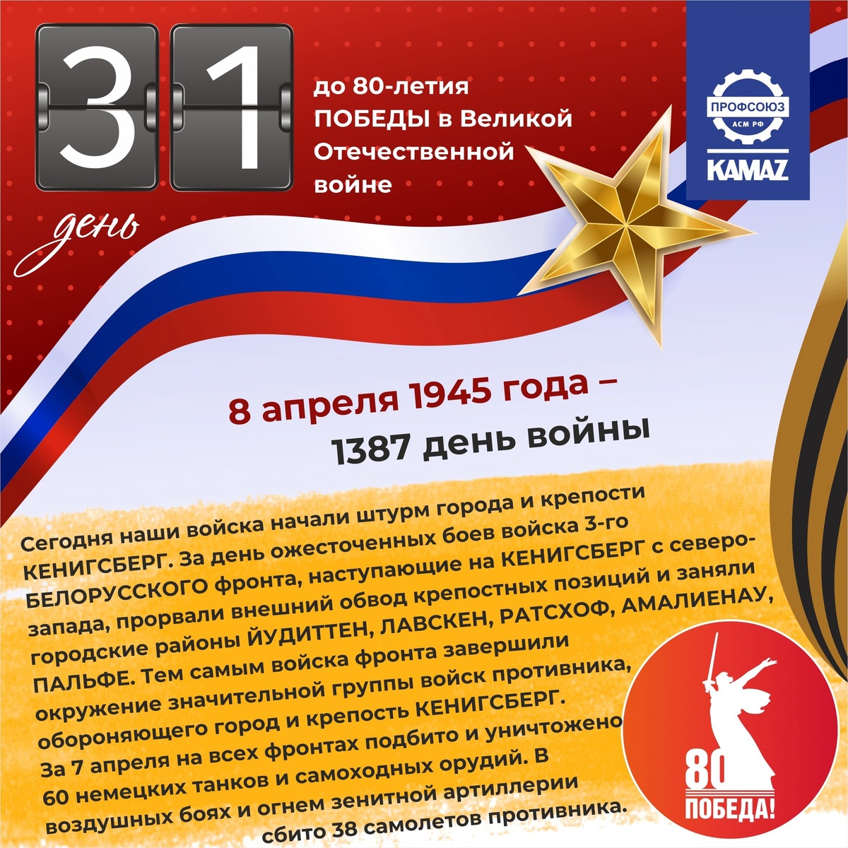 Сегодня наши войска начали штурм города и крепости КЕНИГСБЕРГ. За день ожесточенных боев войска 3-го БЕЛОРУССКОГО фронта, наступающие на КЕНИГСБЕРГ с северо-запада, прорвали внешний обвод крепостных позиций и заняли городские районы ЙУДИТТЕН, ЛАВСКЕН, РАТСХОФ, АМАЛИЕНАУ, ПАЛЬФЕ. Войска фронта, наступающие на город с юга, заняли городские районы ШЕНФЛИС, ШПАЙХЕРСДОРФ, ПОНАРТ, НАССЕР ГАРТЕН, КОНТИНЕН, Главный вокзал, Кенигсбергский порт и, форсировав реку ПРЕГЕЛЬ, заняли городской район КОССЕ, где соединились с войсками, наступающими на КЕНИГСБЕРГ с северо-запада. Тем самым войска фронта завершили окружение значительной группы войск противника, обороняющего город и крепость КЕНИГСБЕРГ. За день боя войска фронта взяли в плен свыше 15.000 немецких солдат и офицеров. В районе БРЕСЛАУ продолжались бои по уничтожению окруженной группировки противника. Северо-восточнее и севернее БРАТИСЛАВЫ войска 2-го УКРАИНСКОГО фронта, продолжая наступление, заняли на территории Чехословакии более 60 населе