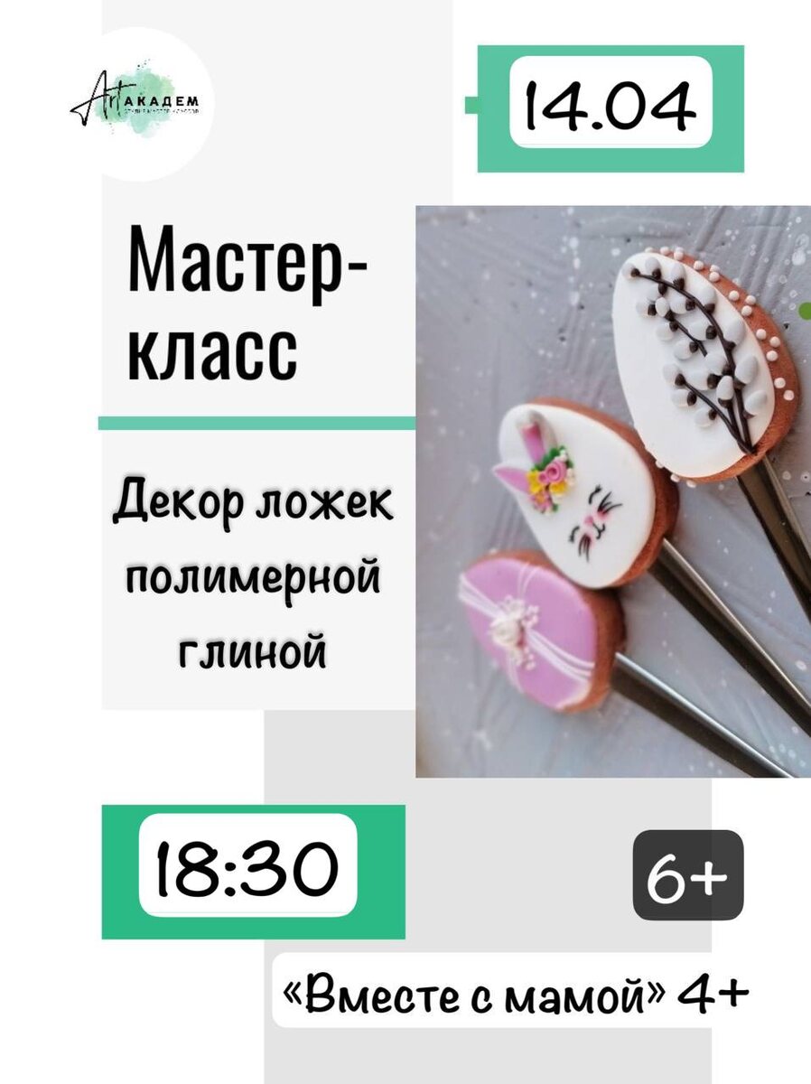 14 апреля в 18:30 приглашаем Вас на мастер-класс по декору ложек полимерной глиной! В этот раз мы создадим «Сладкие ложки к Пасхе», которые станут ярким акцентом Вашего праздничного стола. Под руководством опытного мастера Вы научитесь работать с полимерной глиной, освоите техники лепки и раскроете секреты создания оригинальных дизайнов. Не упустите возможность проявить свою креативность и сделать что-то особенное к празднику! Места ограничены, поэтому спешите записаться. Ждем Вас на нашем мастер-классе! 🎨✨ 📍 Место встречи: АртАкадем, ул. Академика Ландау 45-8. 💰 Стоимость участия: 750 руб. 🔗 +7 (992) 331-83-51 @ArtAkadem66 ✍️ в комментарии под постом