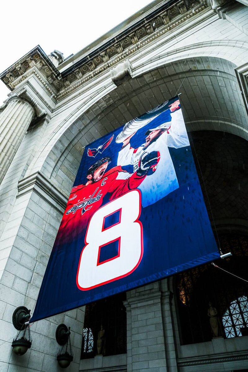 Главный вокзал в Вашингтоне — Union Station — украсили баннерами в честь рекорда российского хоккеиста Александра Овечкина в НХЛ