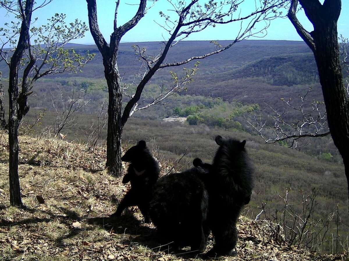 А вот ещё одна косолапая мама и её медвежата-«танцоры»! 🐻 На этот раз в объектив фотоловушки «Земли леопарда» попала гималайская медведица со своими активными чадами. Малыши познают новый мир и, конечно, им интересно всё, что происходит вокруг. На кадрах медвежата будто танцуют, но на самом деле они осматриваются и, не отходя от мамы, осторожничают. Всё же с мамой всегда спокойнее. Медвежата рождаются в январе-феврале весом всего по 300—400 г. Детёныши развиваются медленно и даже в месячном возрасте совершенно беспомощны. Половой зрелости молодые гималайские медведи достигают на третьем году жизни. Продолжительность жизни «лунных» медведей — около 25 лет. 🐾 Здесь «Земля леопарда» 🐾