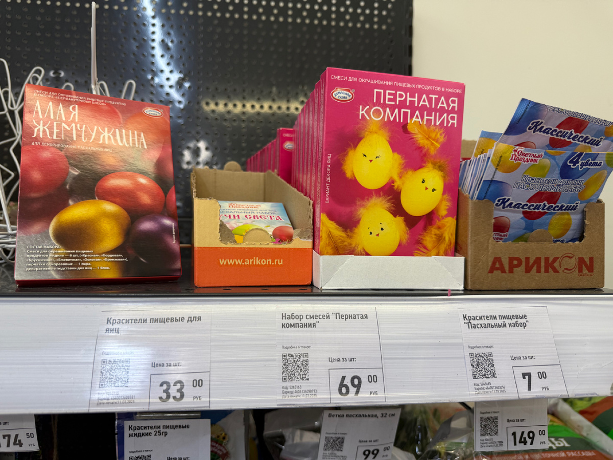 Также присутствовали разные разные упаковки для кулича – как для покупного, так и для домашнего. Визуально похожи на корзиночку. Если вы печете куличи в подарок близким, то супер идея купить такие упаковки.