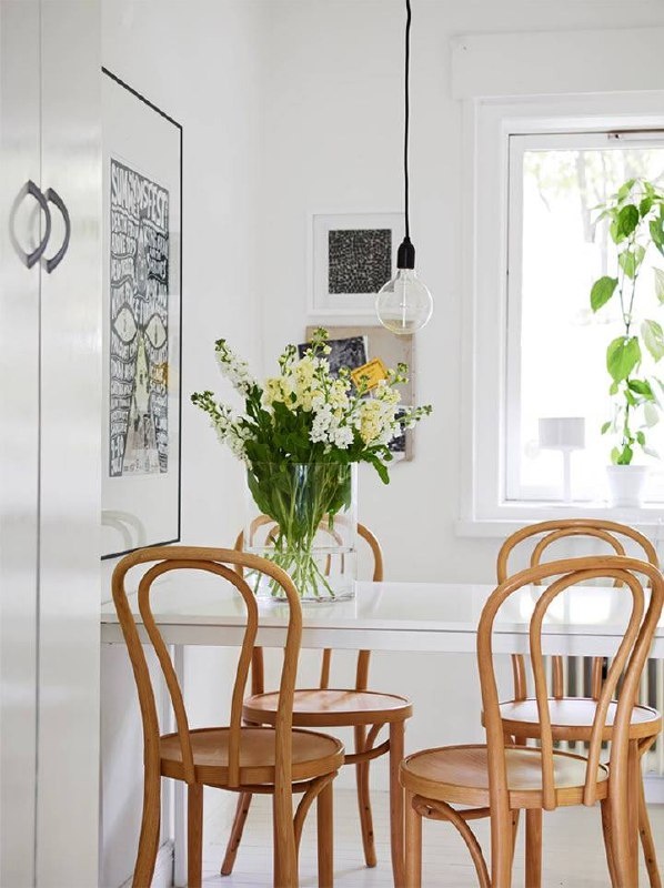 Оптимальный вариант - вещь с дизайном вне времени,выполненная из долговечного материала - на фото один из вариантов - это венские стулья,очень их люблю,прекрасно будут смотреться в любом интерьере
