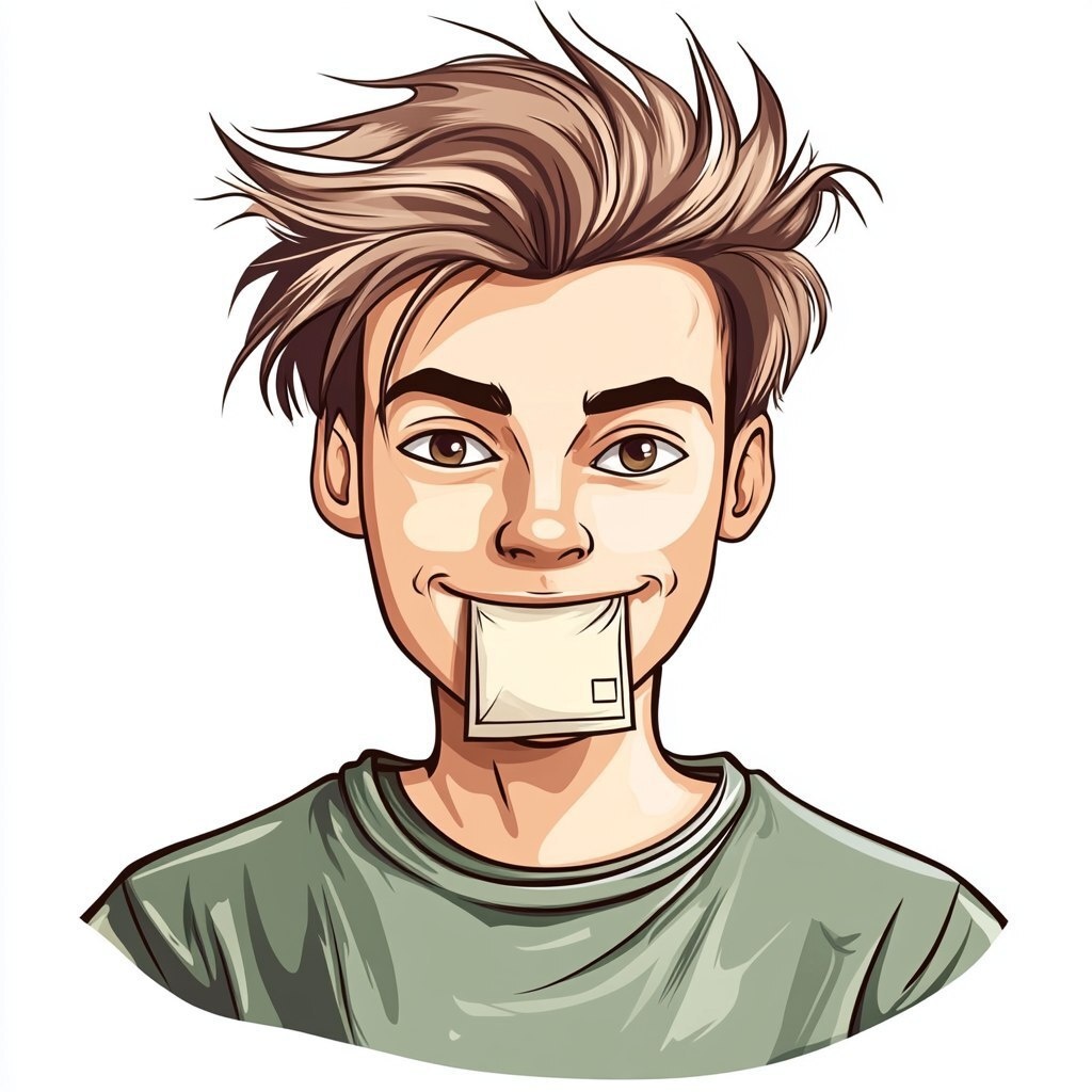 Создано на основе запроса: a cute teenager, with teabag in his mouth, vector illustration style, white background