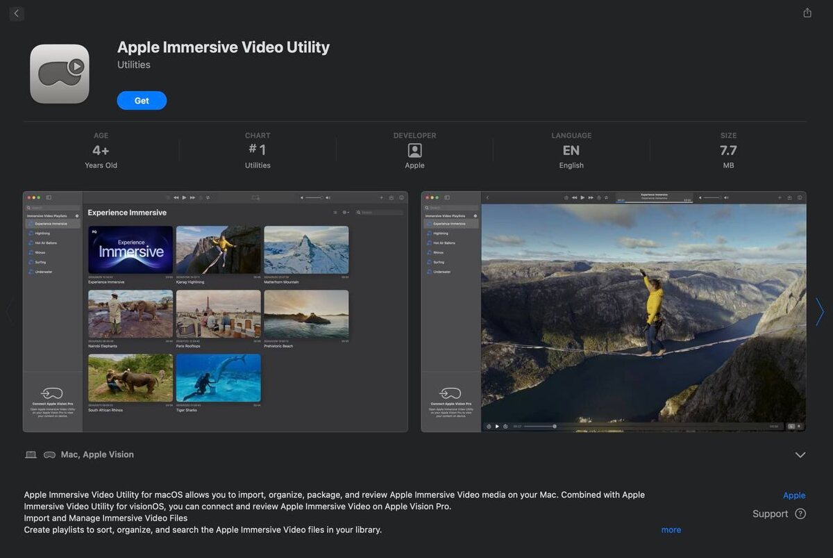 Новое приложение Immersive Video Utility для Mac и Vision Pro.