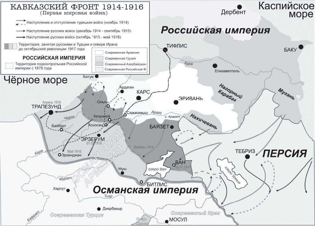 Основным противником Османской империи на Кавказе была Российская империя. Первые сражения, такие как Сарыкамышская операция (декабрь 1914 – январь 1915 года), завершились катастрофическими поражениями для османской армии. Плохая подготовка, суровые зимние условия и недооценка противника привели к огромным потерям. Однако в 1918 году, после выхода России из войны, османские войска временно заняли Баку и часть Кавказа, что стало их единственным значительным успехом на этом фронте.