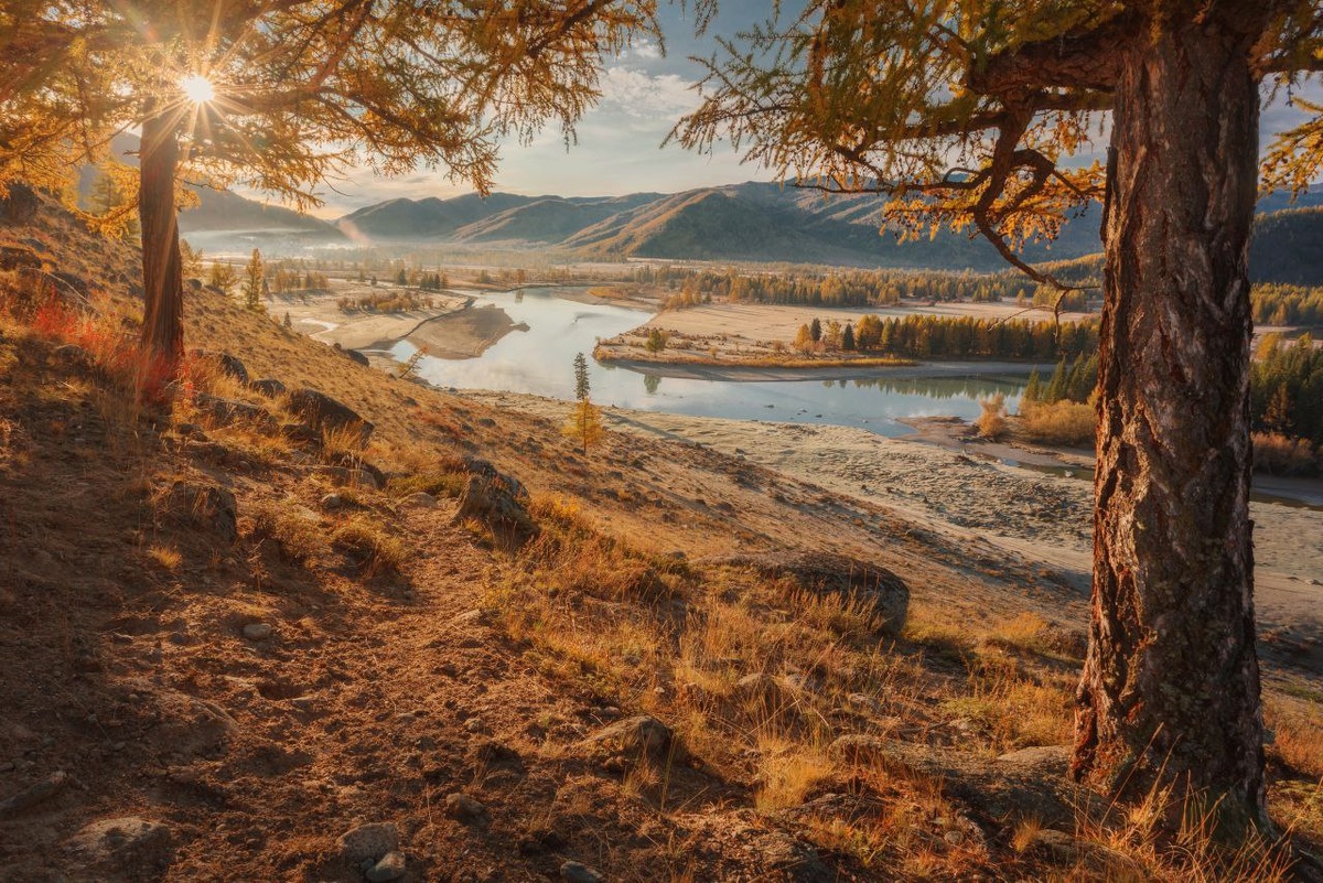 Рассвет в селе Беляши в Кош-Агачском районе, Горный Алтай