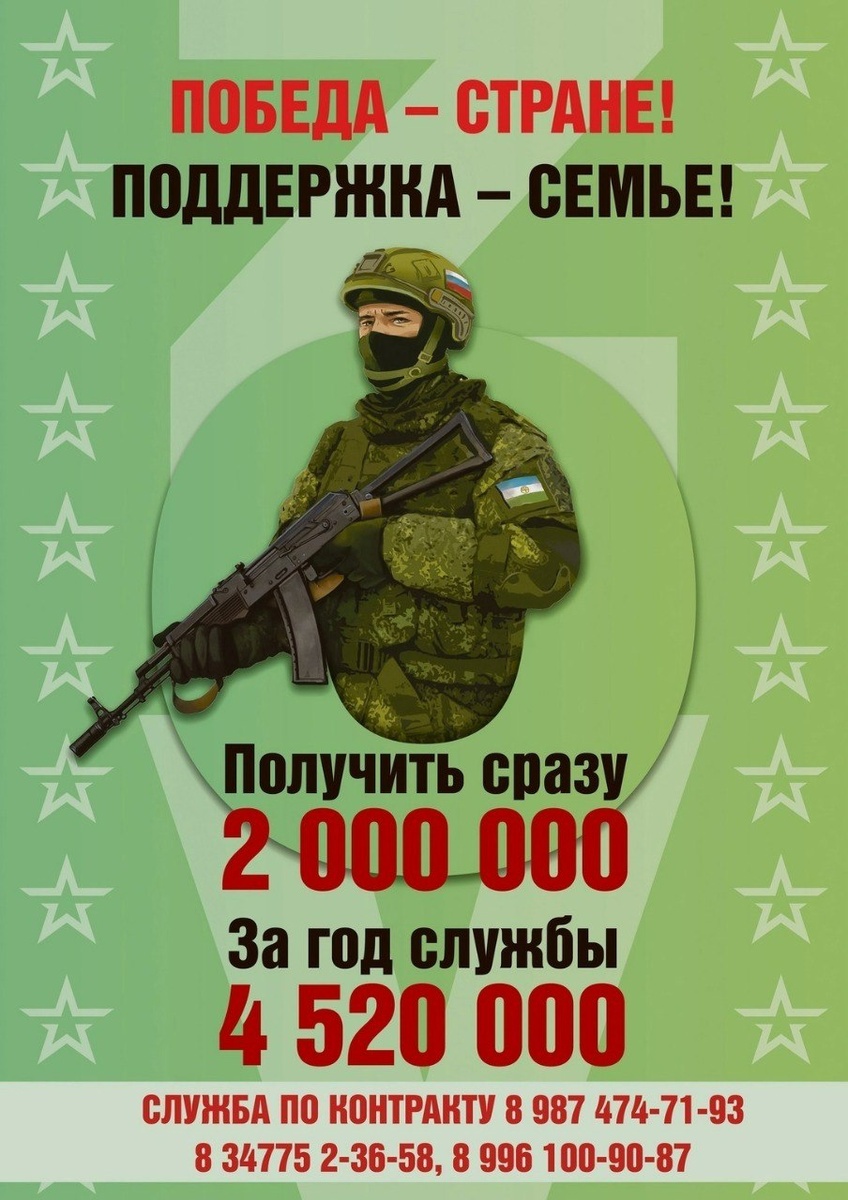 С 1 января 2025 года единовременная выплата жителям республики, заключившим контракт с Министерством обороны РФ, составляет 2 млн рублей. Для поступления на службу по контракту необходимо обратиться в военкомат по адресу: г. Сибай, ул. Пионерская, 7, тел. 8-987-474-71-93; 8 (34775) 2-36-58; 8-996-100-90-87. #Сибай #СВО