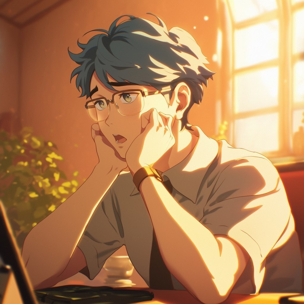 Создано на основе запроса: Close-up of an excited and surprised young man, large shining eyes, mouth slightly open in awe, flushed cheeks, cozy noontime café in the background. Anime Style, --- Автоперевод: Крупным планом взволнованного и удивленного молодого человека, больших сияющих глаз, рот, слегка открытый в восторге, покрасненные щеки, уютное полудвое кафе на заднем плане. Какое твое впечатление? 🤔 https://dzen.ru/id/65c0c65c86e4f837c27b24d7 #ИИ #AI #нейросеть #midjourney #art