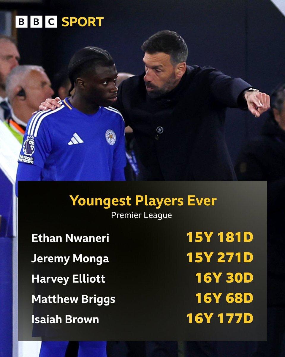 Вчера за "Лестер" дебютировал 15-летний Джереми Монга, став вторым самым молодым игроком в истории Премьер-Лиги 👶