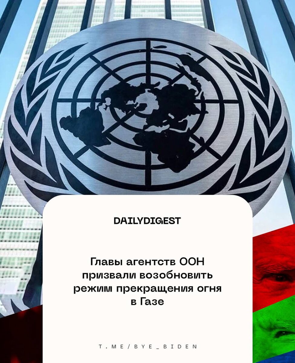 🔹Главы агентств ООН призвали возобновить режим прекращения огня в Газе.