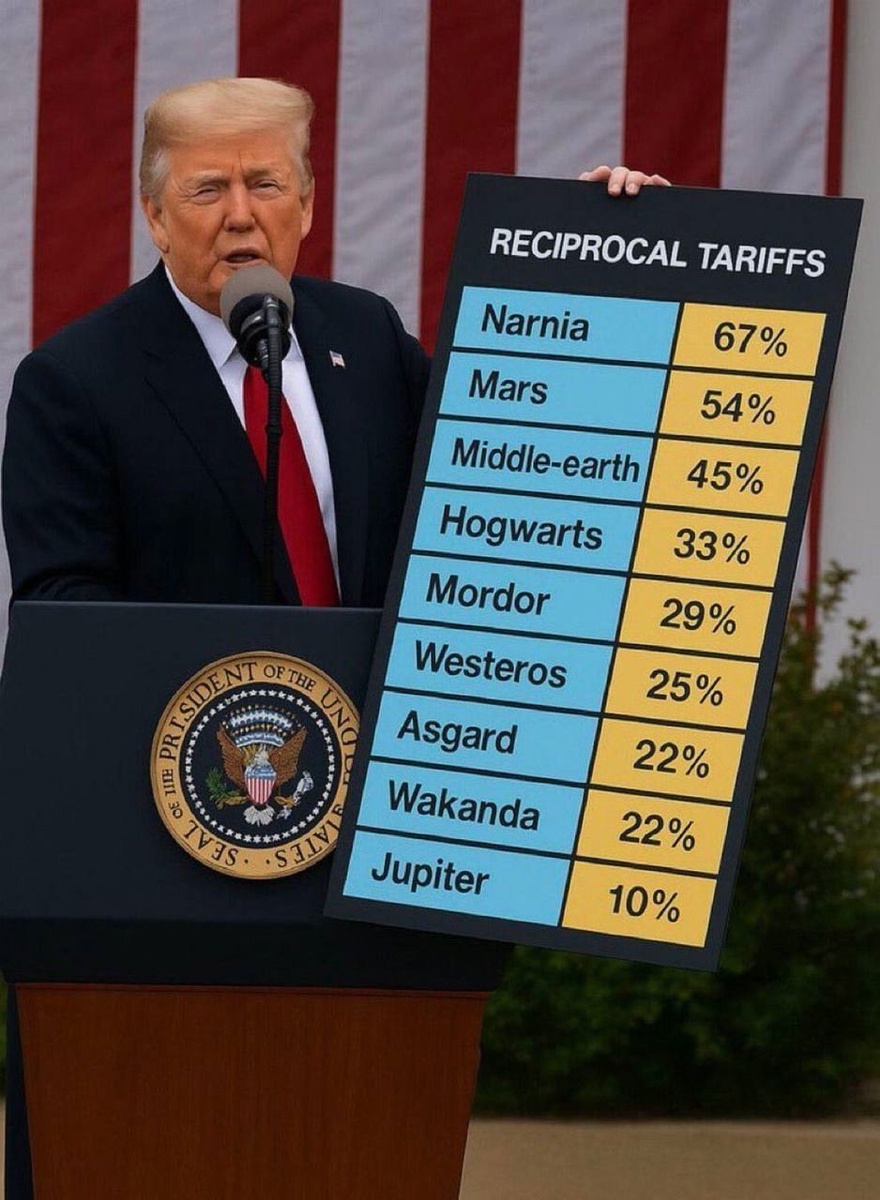 📍Дональд Трамп только что анонсировал новые умопомрачительные тарифы.