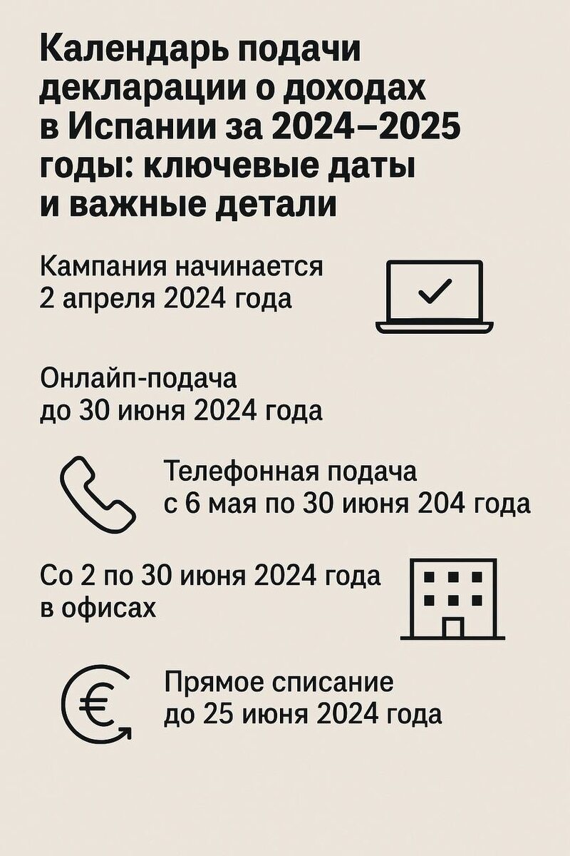 Календарь подачи декларации о доходах в Испании за 2024–2025 годы: ключевые даты и важные детали