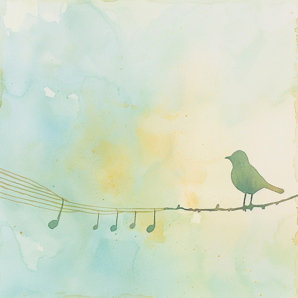 Создано на основе запроса: A watercolor painting of a single bird silhouette perched gracefully on a thin branch, branch subtly woven with a translucent musical clef, soft pastel background wash of light green, pale blue, and golden hints. Bird centered, slightly off to the right, near soft watercolor gradients. Minimalist setting, background clean with gentle paper texture. Soft ambient lighting with golden highlights and subtle shading. Created Using: sable watercolor brush, minimalist design principles, traditional wash techniques, soft-edged masking, matte paper grain, delicate pigment blending, pastel color harmonizing, golden mica shimmer --- Автоперевод: Акварельная живопись одного птичьего силуэта изящно расположена на тонкой ветви, ветвь тонко соткана с полупрозрачным музыкальным Clef, мягким пастельным фонами светло -зеленого, бледно -голубых и золотистых оттенков. Красиво вышло? 🤔 https://dzen.ru/id/65c0c65c86e4f837c27b24d7 #ИИ #AI #нейросеть #midjourney #art