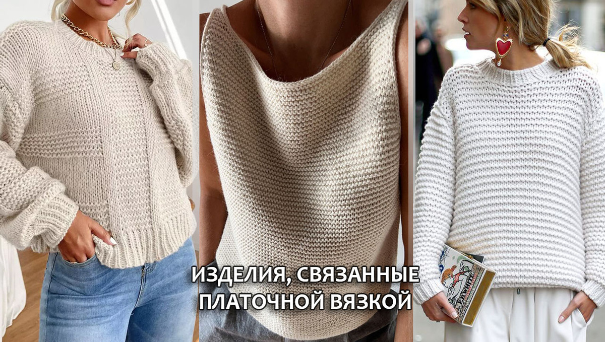 Платочную вязку осилит даже новичок, поскольку вязать ее особенно просто, если вы вяжете поворотными рядами. Нужно лишь научиться вязать лицевые петли. Однако при ее простоте можно связать стильные базовые изделия, которые впишутся в любой гардероб. В этой статье я собрала изделия, выполненные платочной вязкой полностью или частично. Не забудьте подписаться на канал и поставить лайк этой статье. На моем канале вы найдете мастер-классы, полезные статьи со схемами узоров и видео с обзором пряжи, инструментов и вязаных изделий. Не важно все полотно связано платочной вязкой или только часть, некоторые топы из подборки можно связать за несколько дней. Поскольку платочная вязка идеально сочетается с лицевой гладью, которую можно освоить на самом первом этапе изучения вязания. У нескольких изделий, представленных в подборке использована не платочная вязка, а изнаночная гладь, однако она легко заменяется на "платочку". Можно на полотне пустить пару рядов платочной вязки, это придаст изделию ос