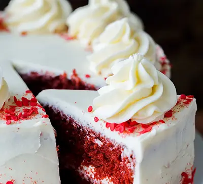 По этому рецепту получается влажный, нежный и очень мягкий ярко-красный торт. Он маслянистый, с тонким ароматом какао и покрыт неотразимо нежной глазурью из сливочного сыра. Этот торт идеально подходит для любого праздника или особого случая и является самым популярным в последнее время. Обязательно попробуйте его приготовить. Вот рецепт торта красный бархат. Для приготовления нам понадобятся вот эти продукты: Для бисквита: 2,5 стакана пшеничной муки, + немного для посыпки противней 2 ст. л. несладкого какао-порошка 1 чайная ложка соды 1/2 ч. л. соли 0,5 стакана несолёного сливочного масла комнатной температуры, + немного для смазывания форм 225 г сахарного песка 2 ч. л. ванильного экстракта 2 крупных яйца, комнатной температуры 0,5 стакана растительного масла стакан молока комнатной температуры 1 чайная ложка уксуса 1/2 чайная ложка красного гелевого пищевого красителя. Для сливочной глазури: 220 г несолёного сливочного масла, размягчённого и нарезанного кусочками 180 г сливочного сыр