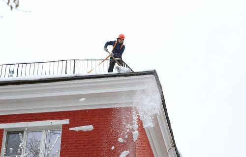 Чтобы крыша не поехала: в Долгопрудном очищают снег с кровли