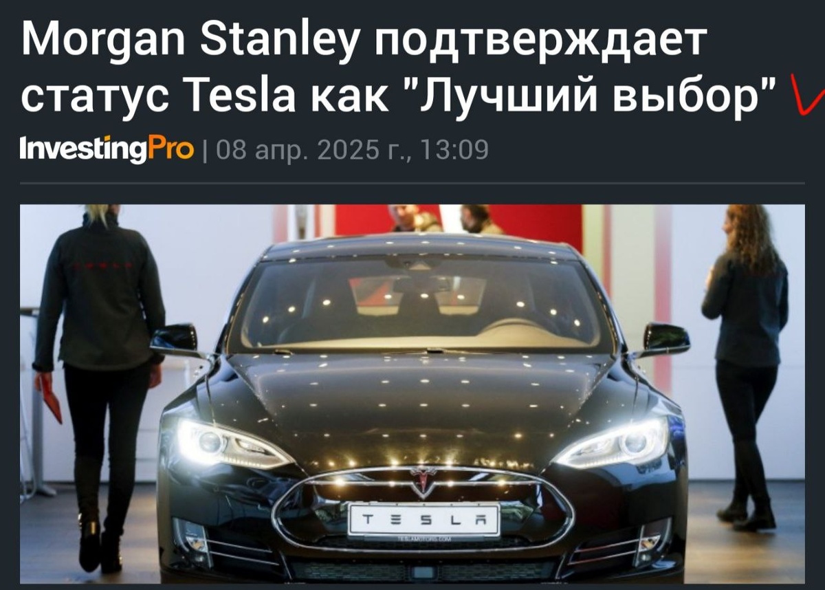 ⚡️Morgan Stanley #MS подтвердили рейтинг "Выше рынка" и целевую цену в $410,00 для Tesla #TSLA