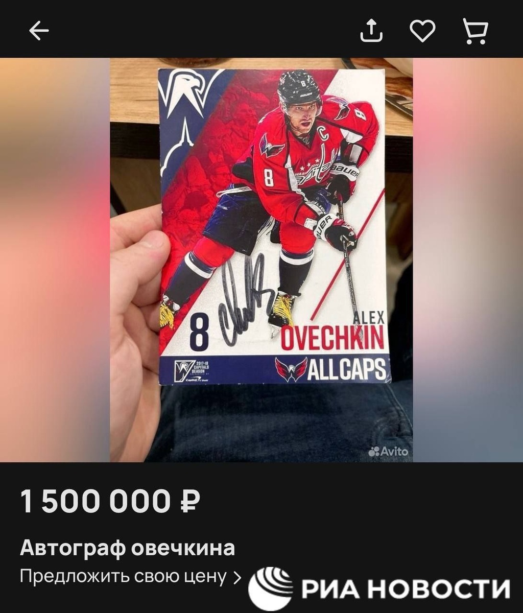 Продажи автографов Овечкина, кофт и футболок с его именем и другой атрибутики, связанной с хоккеистом, выросли на "Авито" вдвое уже в первом