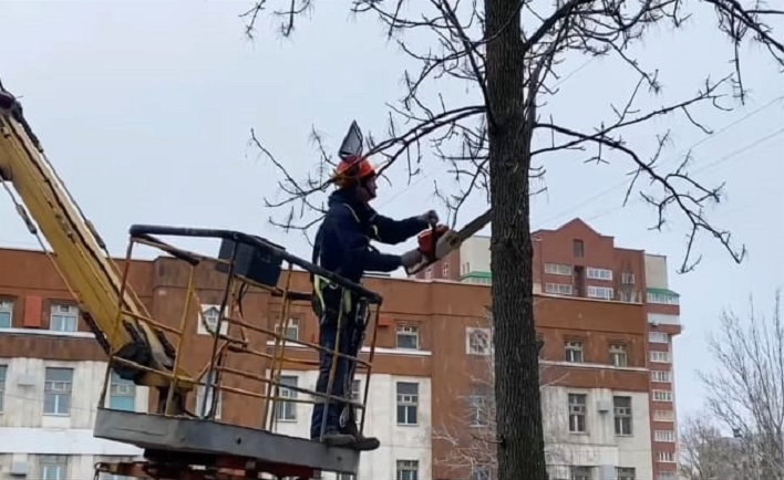 О сносе аварийных деревьев сообщил в соцсетях глава администрации Ленинского района столицы Олег Котов. «Прямо сейчас по улице Карла Маркса вблизи дома № 32 проводим снос 12 перестойных аварийных деревьев. Визуально растение вполне здоровое, но внутри древесина гнилая, трухлявая. Аварийные деревья могли представлять опасность для окружающих», — пояснил глава района.