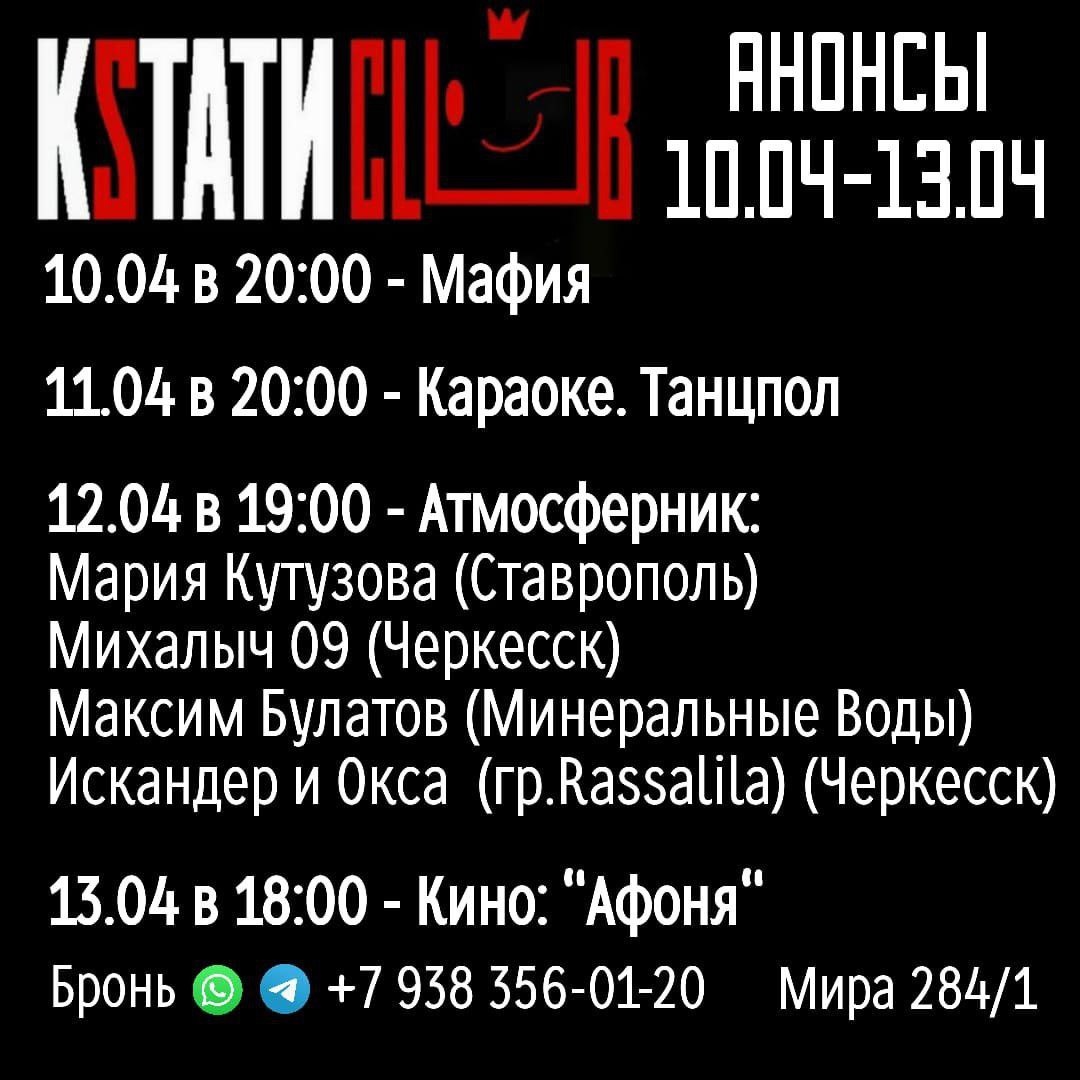 По просьбе друзей, дублирую здесь нашу афишу - в аккурат в День космонавтики взлетаем... выступаем в Кстати.клубе! 🌎👽🛸🛸🛸🚀🚀🚀