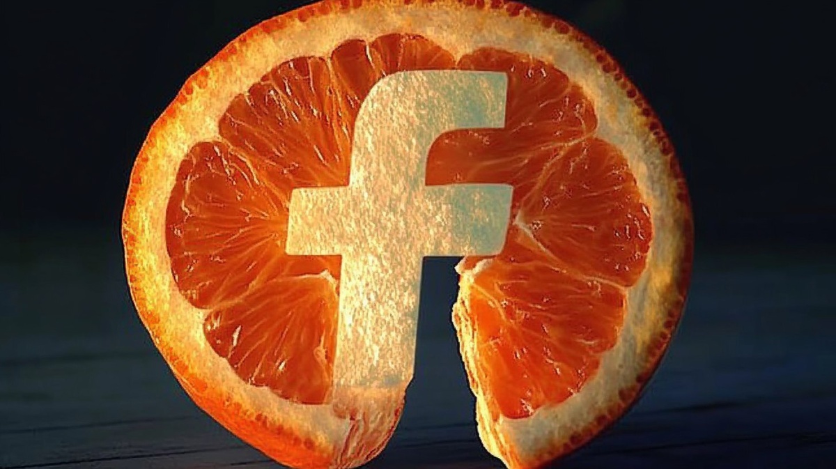 Создано на основе запроса: the Facebook logo inside the fruit, logo with orange flash texture