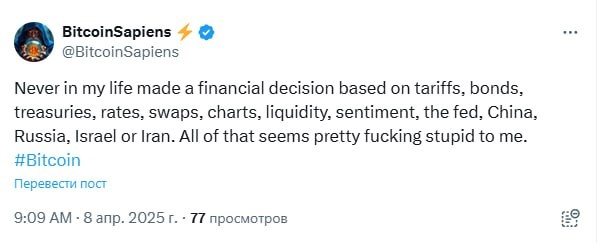 Никогда в жизни не принимал финансовых решений на основе тарифов, облигаций, казначейств, ставок, свопов, графиков, ликвидности, настроений, ФРС, Китая, России, Израиля или Ирана. Все это кажется мне чертовски глупым.