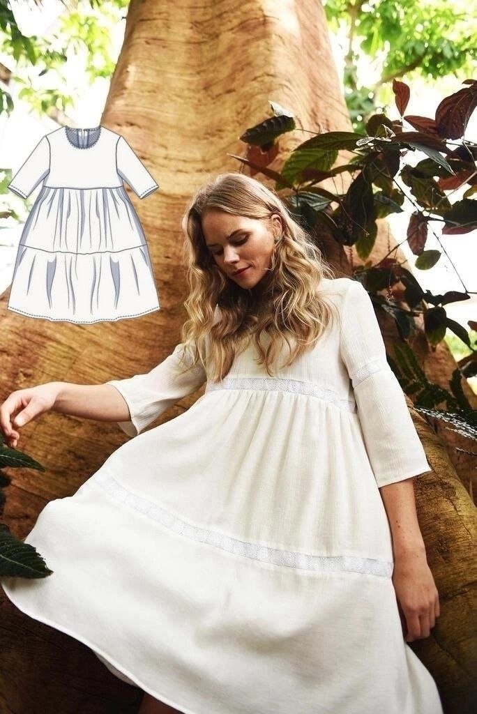 Готовая выкройка женского платья с ярусной юбкой