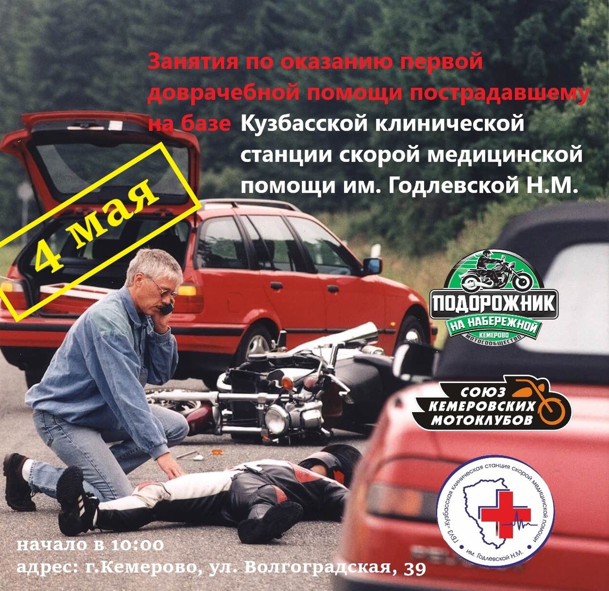 🔁 Дальняк.рф™: Доброе утро, традиционно перед началом мотосезона продолжаем цикл курсов по оказанию первой помощи. когда: 4 мая в 10-00 где: г. Кемерово ул. Волгоградская 39 Станция скорой помощи как записаться: пишете в комментариях своё ФИО (внимание лимит 20 чел) организаторы Подорожник на Набережной Союз Кемеровских Мотоклубов