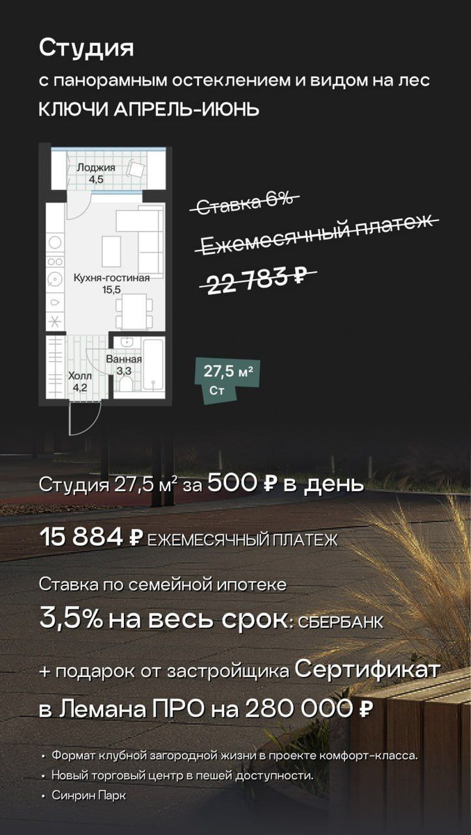 В проекте ЖК Эклипт появились уникальные предложения со ставкой 3,5% на весь срок по семейной ипотеке, + подарок от застройщика 13 месяцев без ежемесячных платежей.