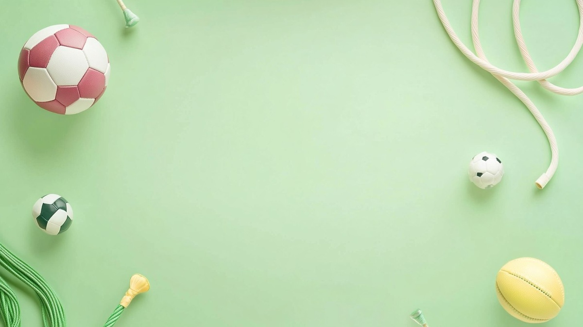 Создано на основе запроса: a light green cartoon background, small football and jump rope in the corner, energetic and fun, kid-friendly and