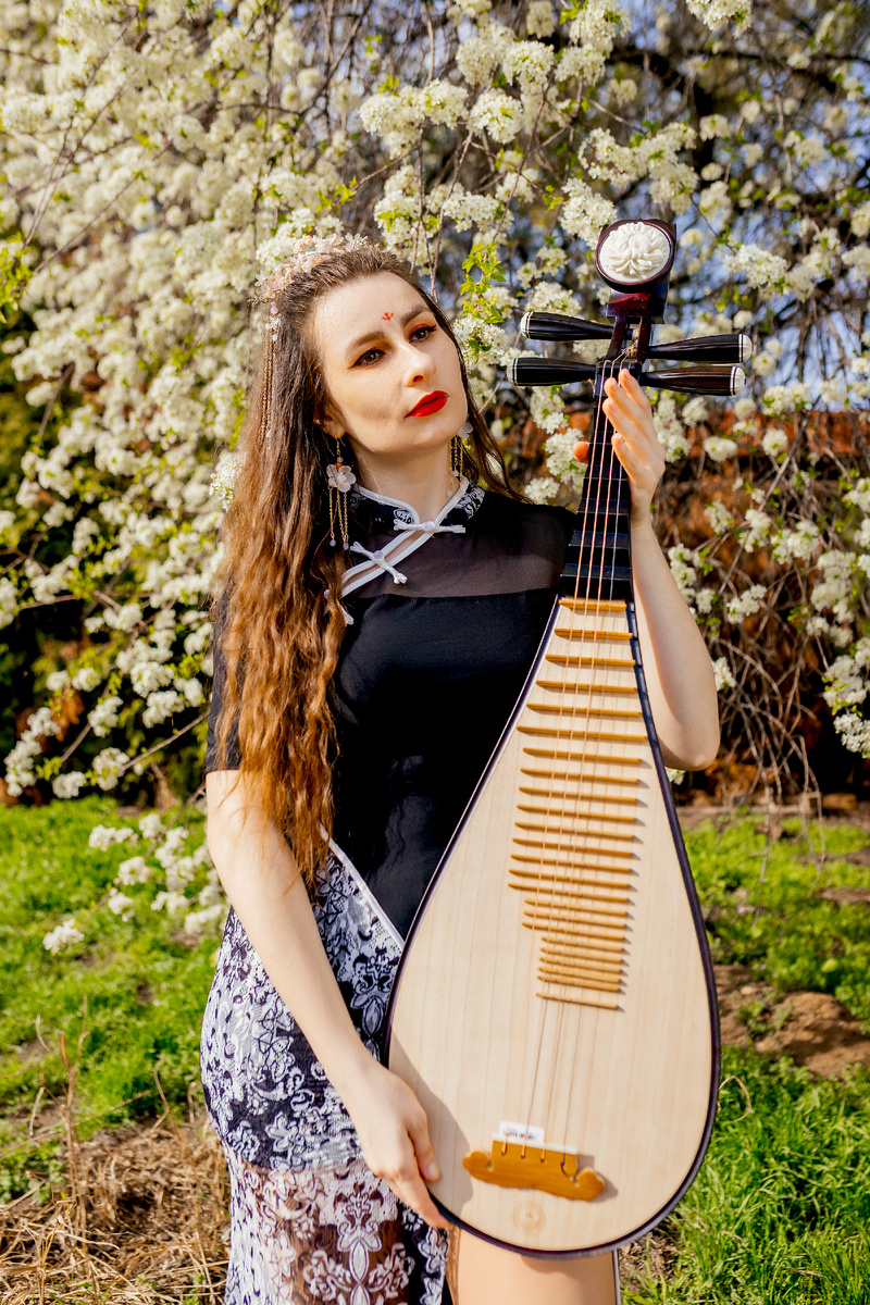 Разберем моё одеяние: ЦИПАО - 旗袍 - qípáo - китайское узкое платье (旗 - "флаг", 袍 - "халат"), 花钿 huā diàn - ХУАДЯНЬ - это красная декорация на лбу у китаянок (花 "цветок", 钿 "украшение") (по легенде принцессе на лоб упал цветок сливы, и девушкам понравилось такое украшение), БУЯО - 步摇 - bùyáo - шпишльки с висящими нитями (步 - "шаг"+ 摇 "трясение"). ДЗИ - 筓 - тонкая шпилька. Раньше в Китае до 15 лет девочки не носили шпильки в прическе, только в 15 лет проходила церемония Закалывания Шпильки в волосы - дзили - 笄礼, что значило наступление брачного возраста. (с) Ваш лингвист-полиглот, Полина Алаабед #ципао #китайскийязык #хуадянь #китайскаяодежда #китайскиешпильки #китайскиеукрашения #китаянка #пипа #фотосессиякитай