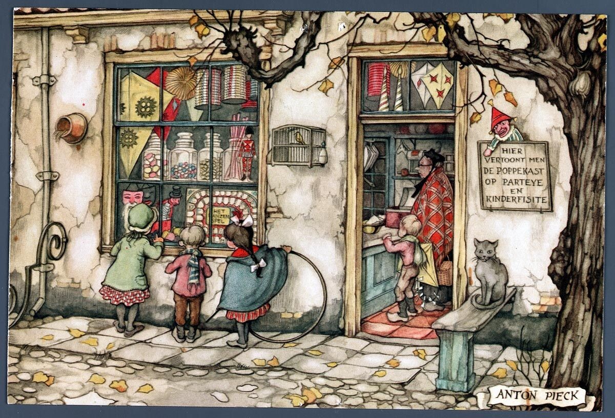 Рождественские открытки, которые он рисовал из года в год, стали душой, истинным символом Нидерландов. Антон Пик оставил после себя бесчисленное множество рисунков, почти сотню картин, написанных маслом, а также гравюры, ксилографии, литографии, обложки журналов, открытки и календари, архитектурные проекты для музея Autotron, а также более полутора тысяч дизайнерских решений для сказочного парка аттракционов Эфтелинга. Об этом необыкновенном парке я обязательно расскажу в одной из следующих статей.
