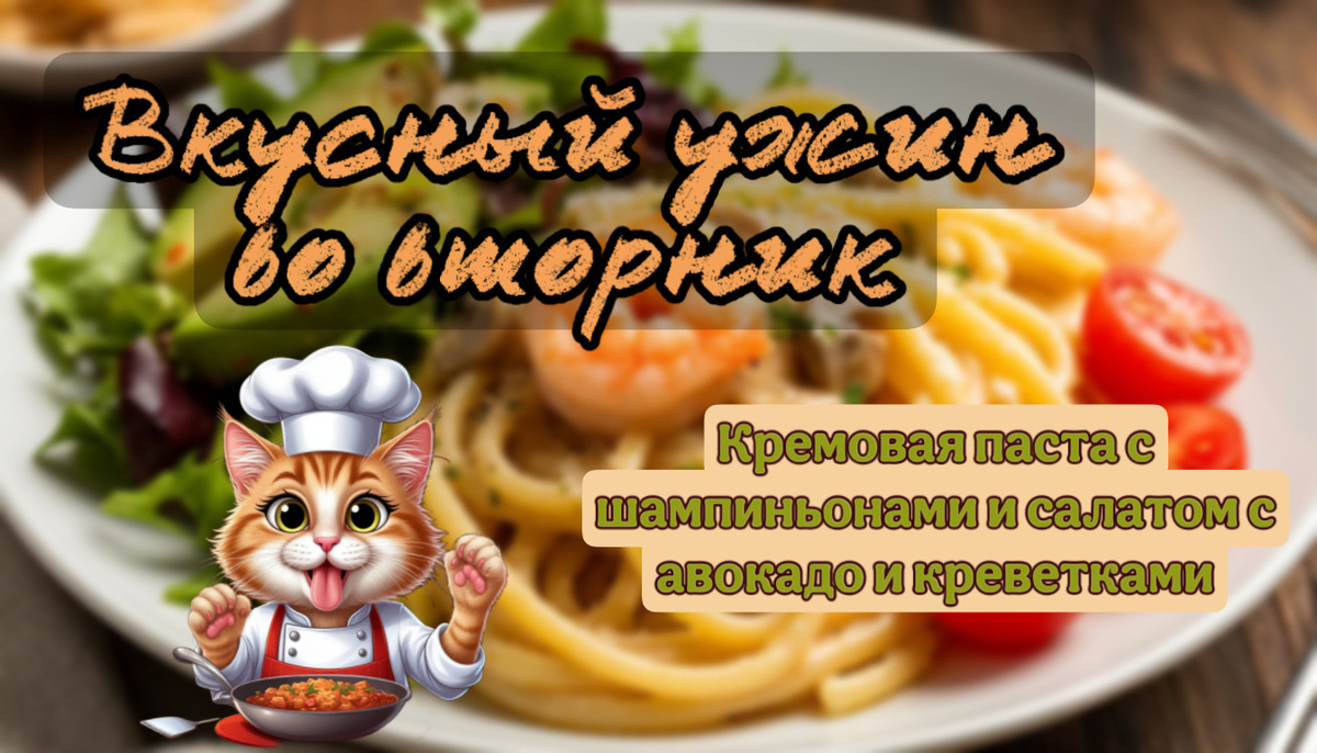 Вы когда-нибудь замечали, что вторник самый недооценённый день недели? Понедельник — тяжёлый, среда — уже “маленькая пятница”, а вот вторник… Почему бы именно в этот день недели не запустить маленькую кулинарную рубрику, о которой я давно думала?!🤔 Друзья, «Вкусный ужин во вторник» начинается с сегодняшнего дня! Каждый вторник я планирую публиковать идеи различных блюд. Пусть этот день недели станет идеальным временем для простого, но вкусного ужина. Ведь не зря в некоторых культурах вторник считался днём домашнего очага. Сегодня в меню: Кремовая паста с шампиньонами и салат с авокадо и креветками Ингредиенты для пасты (на 2 порции): - Спагетти или феттучини — 200 гр.; - Шампиньоны — 200 гр.; - Чеснок — 2 зубчика; - Сливки 10–20% — 150 мл.; - Твердый сыр — 50 гр.; - Соль, перец — по вкусу; - Оливковое масло — 2 ст. л.; - Петрушка/базилик для подачи. Пошаговое приготовление: 1. В кипящей подсоленной воде отварите спагетти по инструкции на упаковке. 2. Пока паста варится, нарежьте