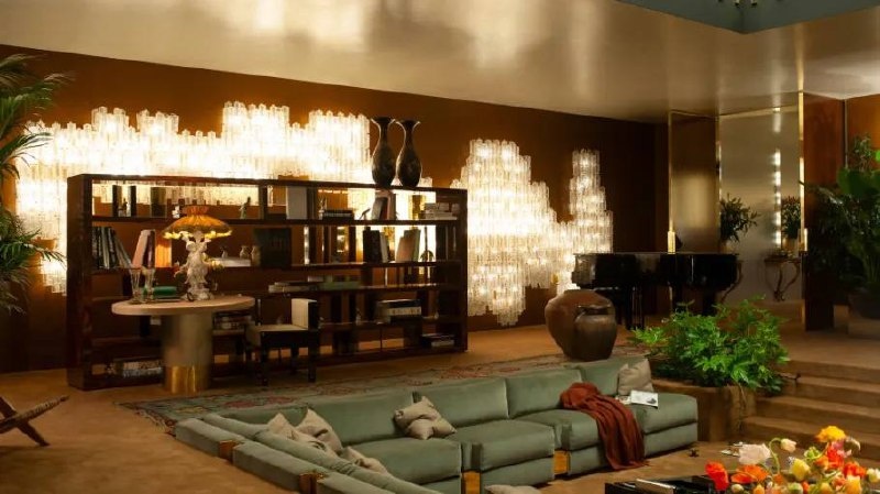 Инсталляция представляет собой полностью обставленный кинематографичный дизайн апартаментов. Им и мебелью занималась миланская студия Dimore Studio. Референсы брали из 70-х и 80-х. Мебель создали использованием фирменных тканей Loro Piana. Декор для инсталляции подобрали из коллекций Loro Piana The Art of Good Living Collection. Ну, и добавили антиквариата и искусства.