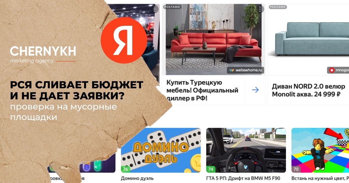 Самый частый вопрос у контекстологов: как вести нормальный трафик в РСЯ? Мы в агентстве каждый месяц делаем аудиты 3-7 потенциальных клиентов в Яндексе. Заходишь в рекламный кабинет, открываешь РСЯ и видишь, что 95% трафика уходит на эти мусорные площадки. Они плохи не тем, что с них пока нет заявок. Они плохи тем, что с них НИКОГДА не будет заявок. Деньги просто сольются в никуда.