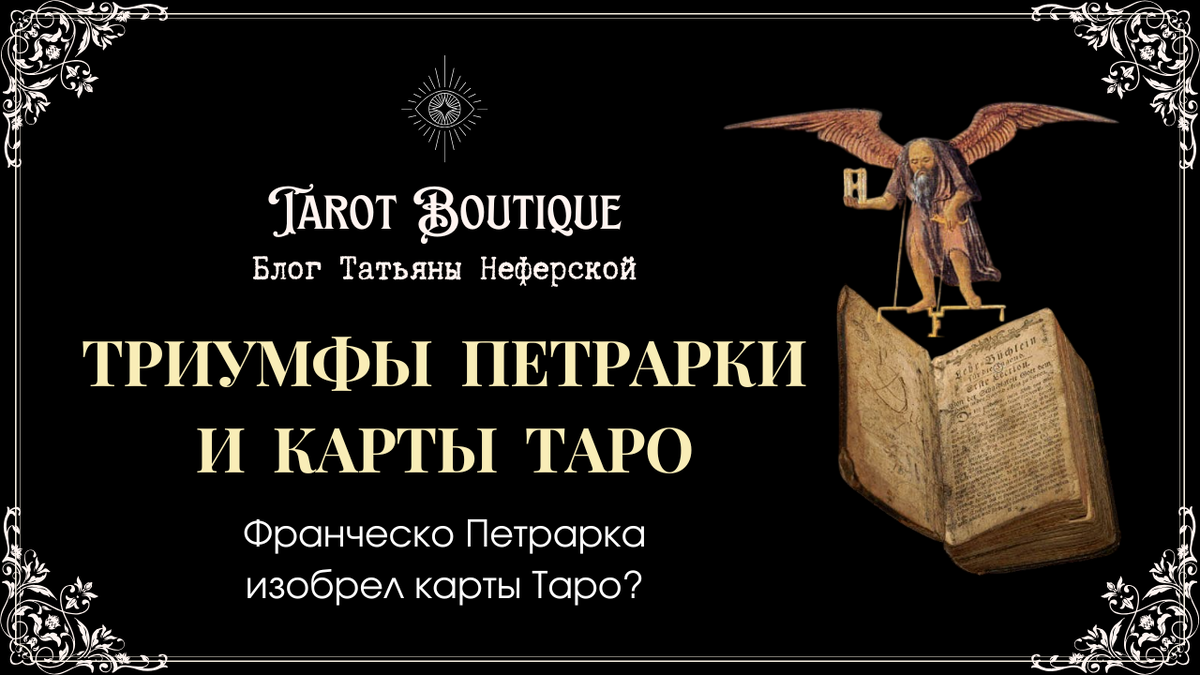 Привествую всех, кто заглянул на огонек :) Меня зовут Татьяна Неферская и это мой блог для тех, кто не хочет поломать себе мозг об эзотерику. Порою можно встретить мнение о том, что, дескать Франческо Петрарка (1304-1374 гг.) черпал вдохновение для своих триумфов в образах козырей Таро. Но так ли это на самом деле? Отвечает Александр Друзь Давайте разбираться. Примерно в 1377 г. в Италии появилась новая карточная игра, которая к концу XIV в. стала известна, как carte da trionfi - «карты триумфов». И некоторые авторы предполагают, что название игры было заимствовано у аллегорической поэмы итальянского поэта Франческо Петрарки «Триумфы», начатой им в 1352 г. В поэме безответная любовь поэта к Лауре вылилась в серию триумфальных видений, которые описывают те силы, что играют основную роль в жизни каждого человека. Первым Петрарке является триумф Любви в облике Купидона, покоряющего и богов, и людей. Вторым становится триумф Целомудрия над Любовью, ассоциирующийся с отвергнутыми Лауро