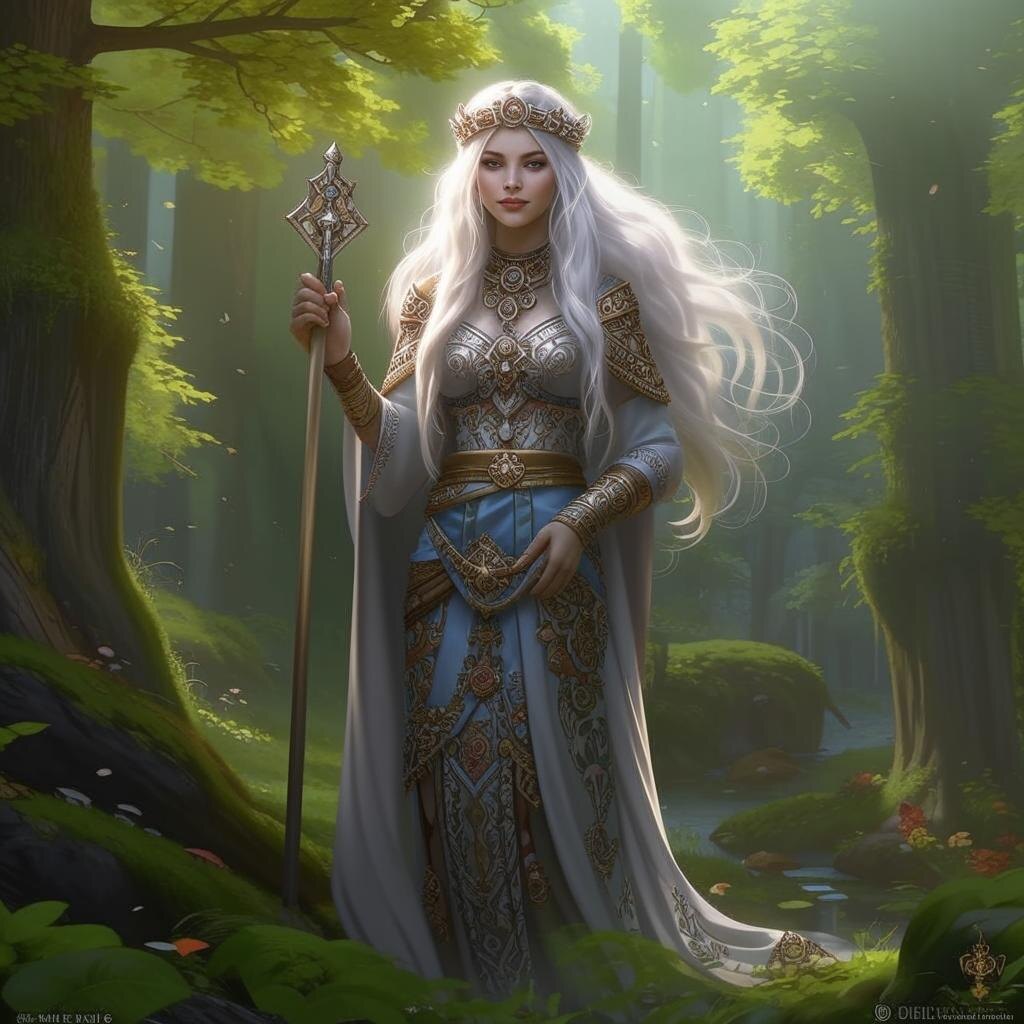 На тропинке, по которой я шла, появилась женщина. Казалось, что она соткана из лунного света и теней. Волосы, похожие на реки серебряных нитей, струились до земли, вплетая в себя небесные звезды. Глаза глубокие, как омуты древних озёр, таили в себе мудрость веков и силу судьбы. Платье её — из туманного шёлка, украшенное узорами, известными лишь богам. В руках она держала веретено, от которого зависели нити жизней каждого смертного. По нему-то я и догадалась, кто это - богиня Макошь и моя бабушка.