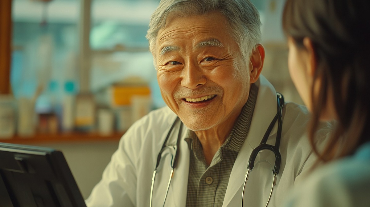 Создано на основе запроса: Happy elderly Korean man at the doctor's
