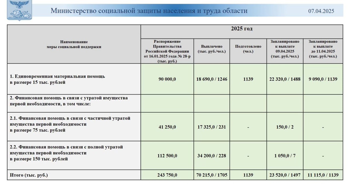Белгородские власти направят заявку в Правительство РФ на дополнительное финансирование выплат пострадавшим от атак ВСУ