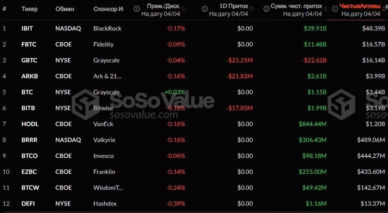 Отток из спотовых биткоин-ЕTF продолжился третий день подряд