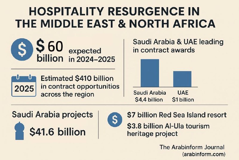Surge in Hospitality Projects Signals Regional Economic Recovery Despite a period of relatively weak performance in the hospitality sector in recent years, the Middle East and North Africa (MENA) region is poised for a strong rebound in 2024. Developers from the Middle East and North Africa are reportedly aiming to launch hospitality projects valued at over $60 billion, covering all stages from design… https://arabinform.com/surge-in-hospitality-projects-signals-regional-economic-recovery/
