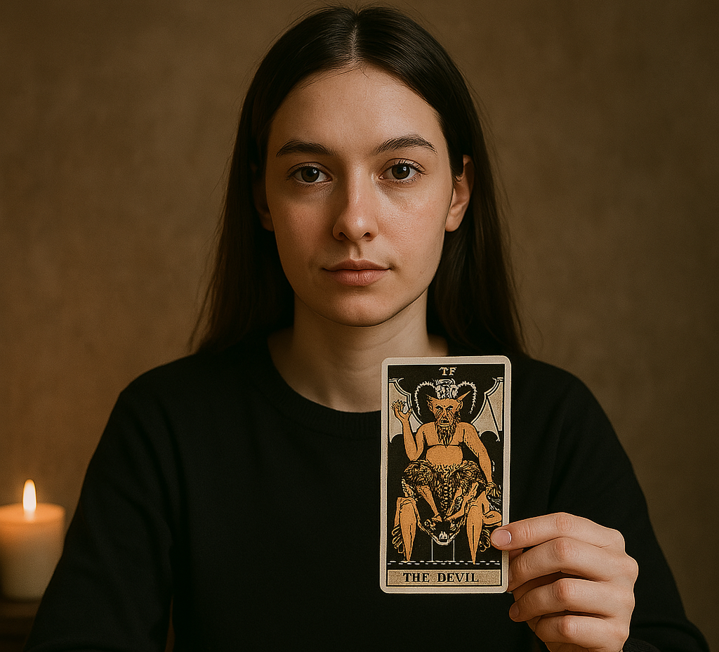 Карта «Дьявол» вызывает у многих страх и настороженность. В любви она может сигнализировать как о страсти и физическом влечении, так и о зависимости, манипуляциях и токсичных отношениях. Всё зависит от контекста расклада и положения карты. Если вы в отношениях Появление карты «Дьявол» в раскладе на уже существующие отношения может указывать на сильную сексуальную привязку, буквально «одержимость» партнёром. Это может быть страсть на грани зависимости, когда вы не можете отпустить человека, даже если он причиняет боль. Также карта часто говорит о манипуляциях, созависимости, ревности, контроле. Кто-то в паре может пытаться подчинить другого, нарушая личные границы. Иногда «Дьявол» указывает на обман, тайные мотивы или двойную жизнь одного из партнёров. Если вы расстались После расставания «Дьявол» может показывать, что вы всё ещё эмоционально или энергетически связаны с бывшим партнёром. Это болезненная привязка, от которой трудно избавиться. Карта словно говорит: «Ты в плену этих чувст