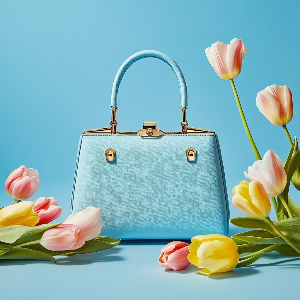 Создано на основе запроса: A sleek designer handbag with structured silhouette and gold hardware, standing upright on a pastel blue background, surrounded by scattered tulips in soft pink, yellow, and orange, floating and laying flat, studio lighting with soft shadows, elegant and minimalistic composition, high-fashion product photography aesthetic, clean and dreamy spring vibe --- Автоперевод: Элегантная дизайнерская сумочка со структурированным силуэтом и золотым оборудованием, стоящая на вертикальном положении на пастельном синем фоне, окруженном рассеянными тюльпанами в нежно-розовом, желтом и оранжевом, плавающем и плоском, студийном освещении с мягкими тени, элегантной и минималистичной композиции, высокомодная фотография продукта, чистая и мечтательная атмосфера, элегантная и минимально Как тебе такая генерация? 🤔 https://dzen.ru/id/65c0c65c86e4f837c27b24d7 #ИИ #AI #нейросеть #midjourney #art