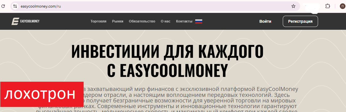 Если ты вдруг решил вложить деньги в брокера Easycoolmoney.com (платформа на домене Trade.Easycoolmoney.com) — стоп. Прежде чем что-то переводить, обязательно прочитай эту статью. Мы собрали отзывы реальных людей, разобрали схему обмана и проверили, насколько вообще легален этот "брокер". Спойлер: ситуация пахнет жареным.