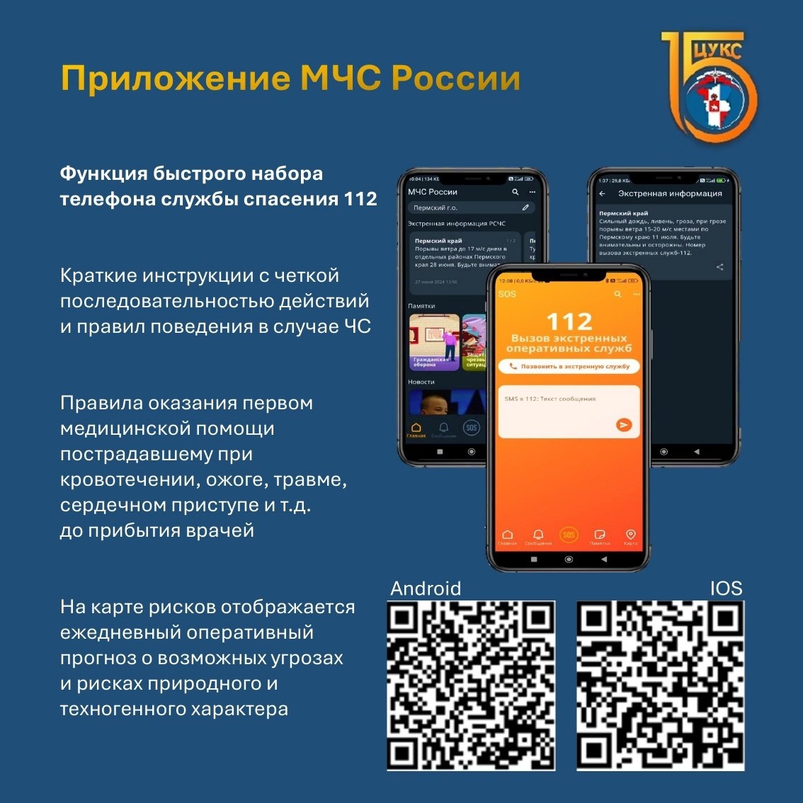 ⚡️ Подготовиться к различным чрезвычайным ситуациям позволит мобильное приложение «МЧС России» Приложение предоставляет возможность получать актуальную информацию о возможных угрозах и рисках, помогает сориентироваться и мгновенно найти информацию в случае возникновения чрезвычайных ситуаций. Главное - приложение содержит функцию быстрого вызова экстренных служб ❗️ 📱 Мобильное приложение «МЧС России» разработано для мобильных устройств на базе операционных систем Android и IOS и доступно для бесплатного скачивания в магазинах приложений RuStore, Google Play, AppGallery и App Store.