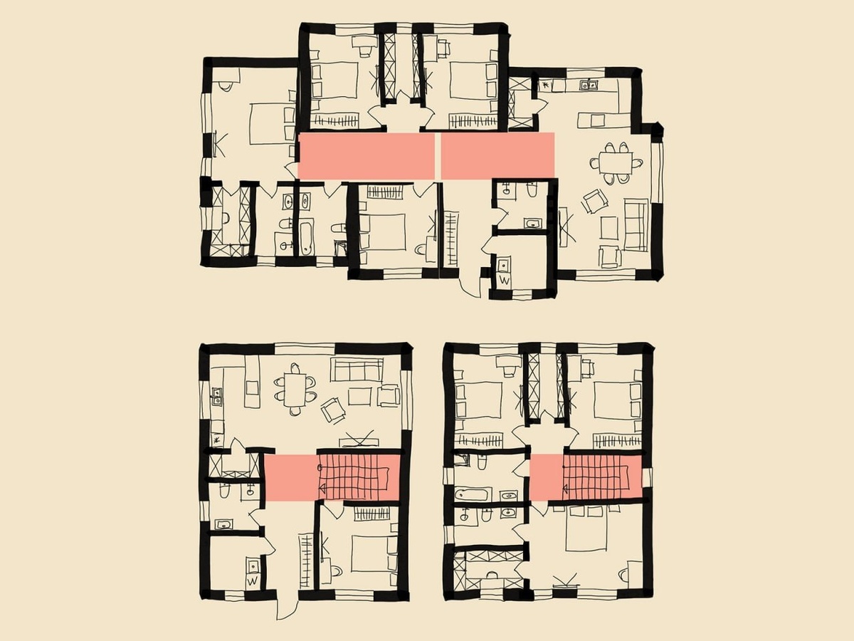Всё, что нужно знать про сравнение двухэтажного и одноэтажного дома. Несмотря на очевидность того, что площадь кровли и плоьщадь фундамента в одноэтажном доме почти в два раза больше, чем в двухэтажном, площадь фасадов одноэтажного дома процентов на 30 меньше, чем площадь фасадов двухэтажного. Но будет ли одноэтажный дом из-за этого дешевле? Зависит от стоимости фасадов. Если фасады недорогие: обычный облицовочный кирпич или обычная штукатурка, то двухэтажный дом всегда дешевле одноэтажного. А если же в доме дорогой фасад, например импортный клинкерный кирпич, то одноэтажный дом будет дешевле двухэтажного. Обязательно найдется кто-то, кто возразит, что зато в одноэтажном доме площадь используется более эффективно за счет отсутствия лестницы. Типа да, одноэтажный дом дороже, но зато он меньшую площадь занимает при том же функционале. Это миф… На изображении две эквивалентные по набору помещений и функционалу планировки. Холл и лестница в двухэтажном доме занимает примерн